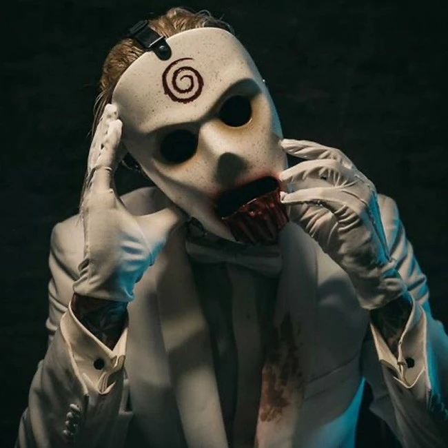 2021 Tour Mask for Chris Motionless of Motionless in White. Inspired by the song “Thoughts and Prayers” All masks come with a 3 point harness.