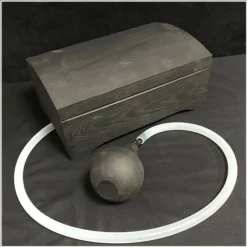 Hyper realistic hand sculpted and painted silicone heart with attached pump. The heart comes in a quality wooden box and a plastic tube runs out of the bottom of the box and attaches to a pump. Just squeeze the pump and the heart beats realistically.