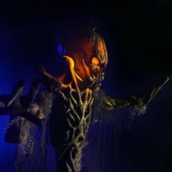 Towering over 8 Ft tall, Pumpkin Stalker rules over its creepy pumpkin patch. This terrifying vision prowls through your field of nightmares…or perhaps your yard or home haunt! A perfect giant Halloween prop decoration for Halloween events, dark attractions, haunted corn mazes, and home decorating.