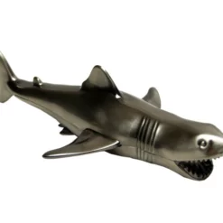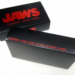It wont cost you $10,000 to bring home this shark! Factory Entertainments first licensed JAWS collectible, the 3D Bruce bottle opener, is 6 inches long and cast in polished stainless steel. Packaged in an attractive slide-out box, this bottle opener is right at home in kitchens, bars and galleys alike. So, whether on land or at sea, men and women (or mates and fair-spanish-ladies) can crack open their favorite beverage in fun retro style.