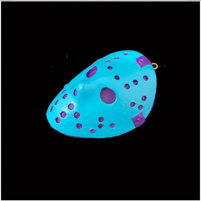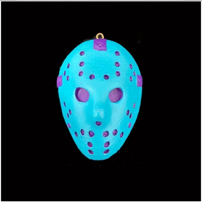 High quality hand sculpted hockey mask tree decoration cast in resin and painted by hand.