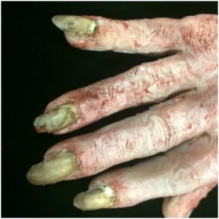 Crafted by a professional US horror artist, this silicone severed witches hand is a professional quality prop. Gnarly fingers and hideous nails.