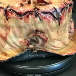 The top hat is made of latex and is lined with burlap for extra strength. It has foam strips at the front and back to allow a fit for most every head size. You can see various body parts including a nose and ear and each piece of ‘skin’ has been stitched together with rough string or wire.