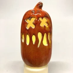 These little ceramic pumpkins are ecceptional quality and as they have a small hole in the base, they can be placed on top of an LED tea light so their ghoulish faces light up!