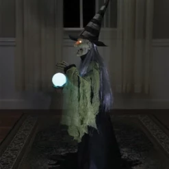 - Her beady yellow eyes glow while she grasps a luminous mystical orb that radiates alternating colors