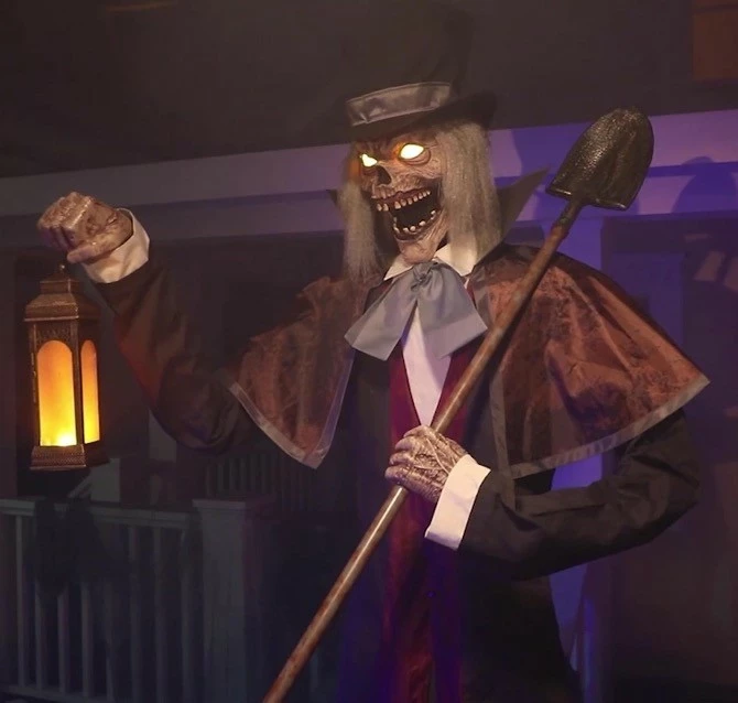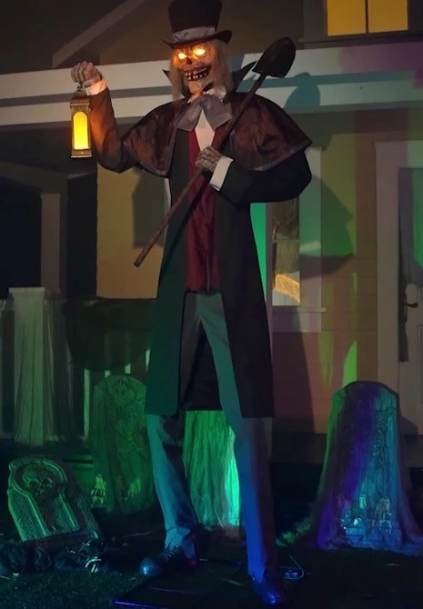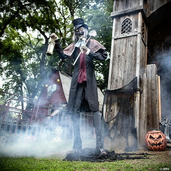 This spooky guy is a huge 8ft plus so will tower above your visiting trick or treaters. If you need a gravedigger to watch over the corpses in your graveyard then this is your guy.