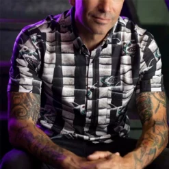 All the way from Saturn, we bring you the Sandworm Stripes KUNUFLEXâ„¢ button down! With a classic striped look straight out of Beetlejuice’s closet, you’ll be the best dressed dead or undead person this side of the Neitherworld. The only thing is, those aren’t stripes at all, just a few friendly…ish sandworms out for a quick bite.
