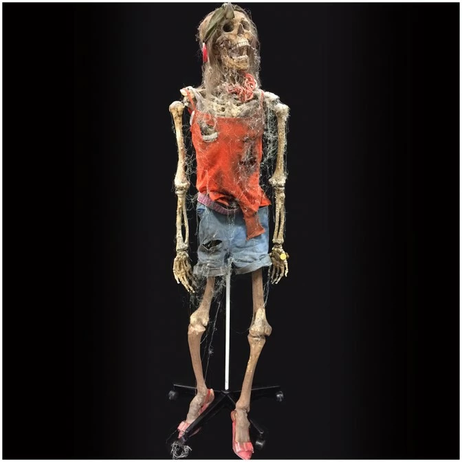 Designed and built in the UK by an awesome team of artists, this incredibly detailed skeleton prop is remnant of a disastrous night out. Barbara never made it home with the rest of her friends, her skeletal form has now been found and will make a terrifying finish to yourย scareย maze or escape room.