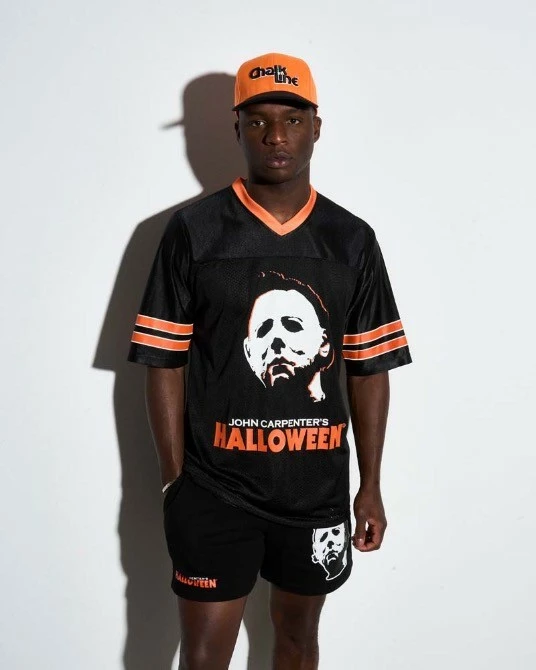 Over 40 years since its initial release date, Halloween remains to be one of the greatest horror films of our time. John Carpenter’s 1978 classic continues to be timeless, a story of an incarcerated Michael Meyers who returns to Haddonfield, Illinois after stabbing his sister Judith at the young age of 6. Chalk Line pays tribute to this horror classic with a Retro Football Jersey.