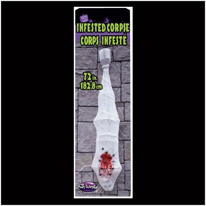 Gauze Wrapped Corpse with blood print. Spiders attached