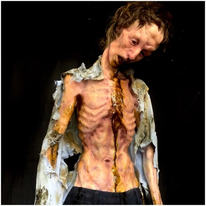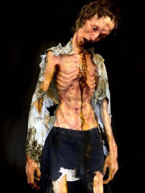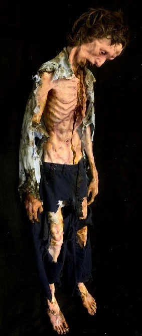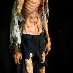 Body in a state of starvation with detail in 360 degrees. Has a pick point on back for mounting. Can be hung from neck, tied to stake, or wherever you’d like to place him