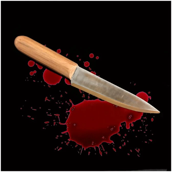 This professional standard prop gives the impression that blood has been spilled when drawn across human flesh. Handcrafted and high quality, this knife has a wooden handle and metal blade.
