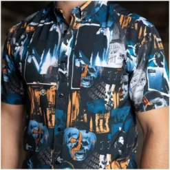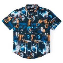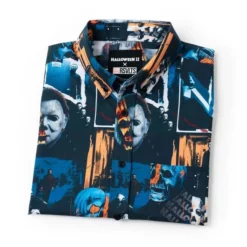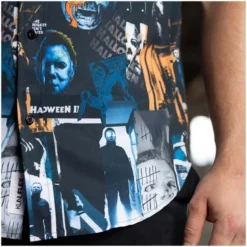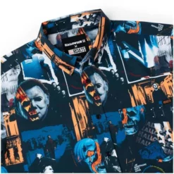 This eerie KUNUFLEX™ button down contains a creepy collage of some of the most chilling imagery associated with the second installment of the Halloween series. And look at this way: as long as Michael Myers is on your shirt, he can’t sneak up on you… you can keep telling yourself.
