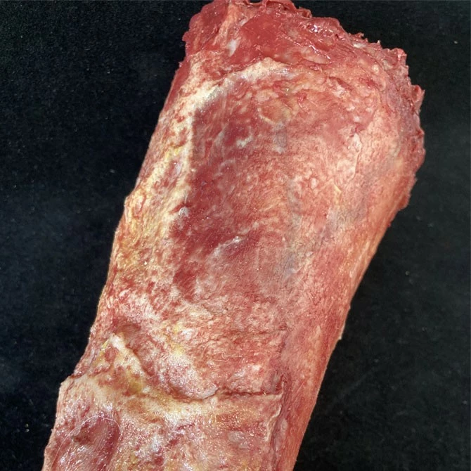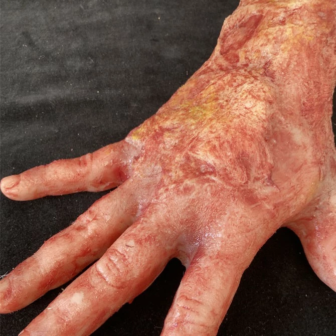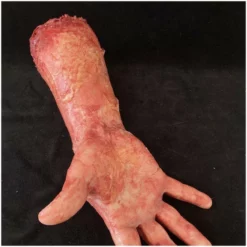 It has a slight melted/acid burn finish to make the limb appear as if it has suffered some toxic exposure and is great for future dystopia, nuclear explosion or zombie themed attractions and events.Â