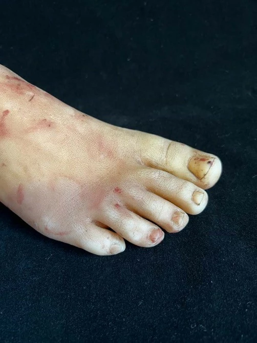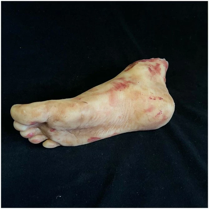 Life cast female foot. Sculpted and hand painted by a US horror artist for the SFX industry.