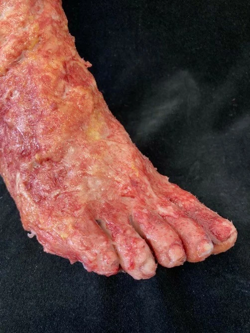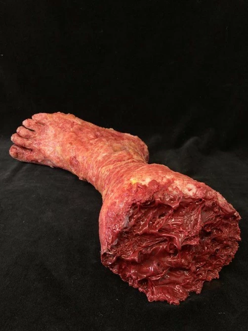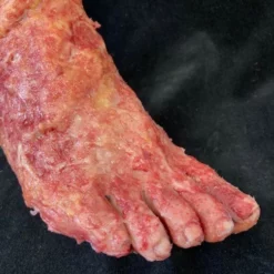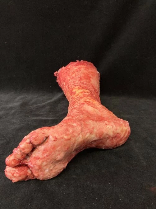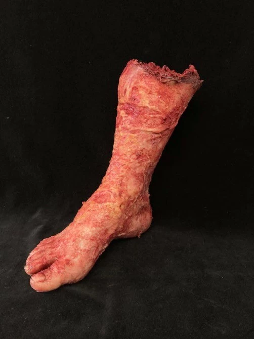 Life cast human severed foot in a ‘noxious’ finish. The perfect prop for your zombie apocalypse scene or future dystopia themed attraction.