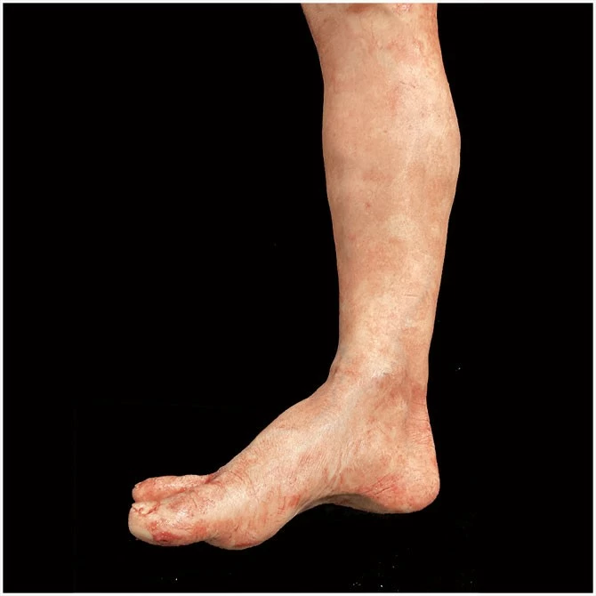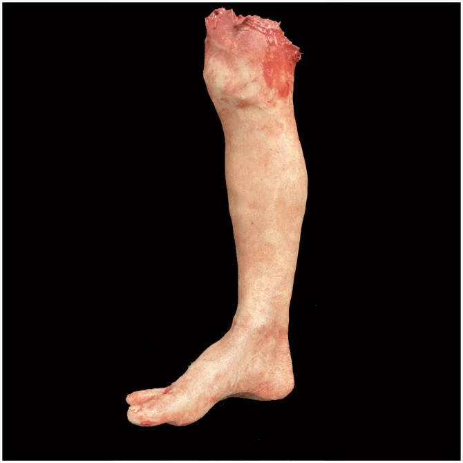 An adult life size leg hand cast in silicone with foam inner.ย