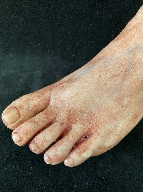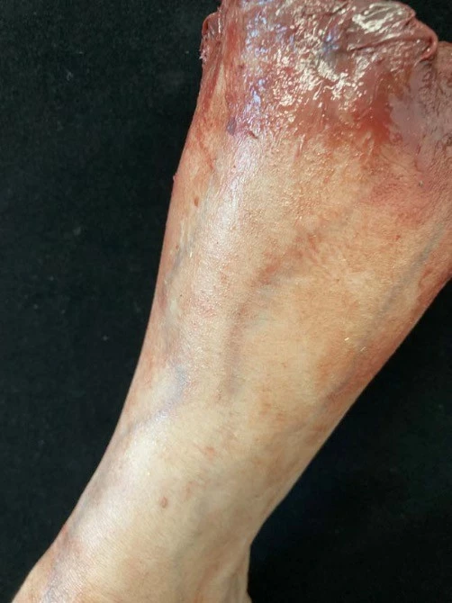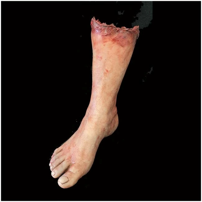 Life cast human severed footย in a ‘dead a while’ finish. Add to your mortuary themedย scare maze or graveyard scene.