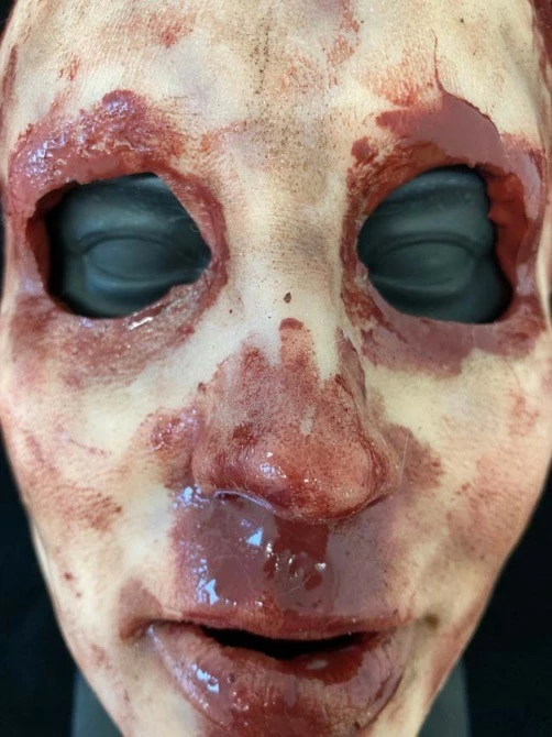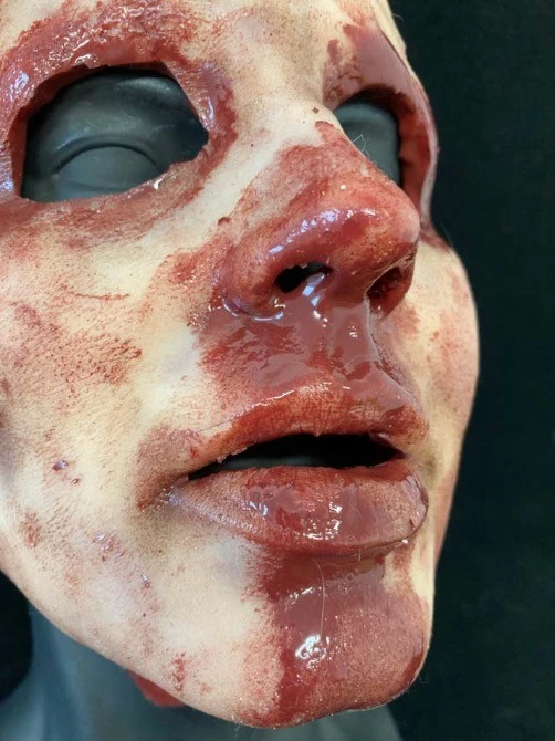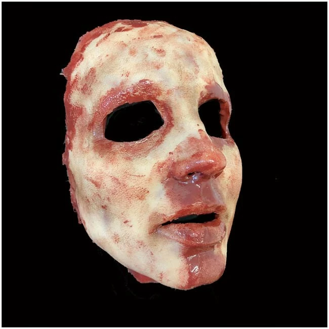 Professional quality face mask created by handย by an independent USย artist. As this is a life cast rather than a sculpt, it is unbelievably realistic. It looks as if you are wearing someone else’s skinned face! Just smear some fake blood on your face and you’re done!