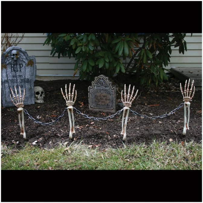 A creepy set of 4 skeleton arms connected by plastic chains. 1.5m long in total. Great for your Halloween graveyard scene.