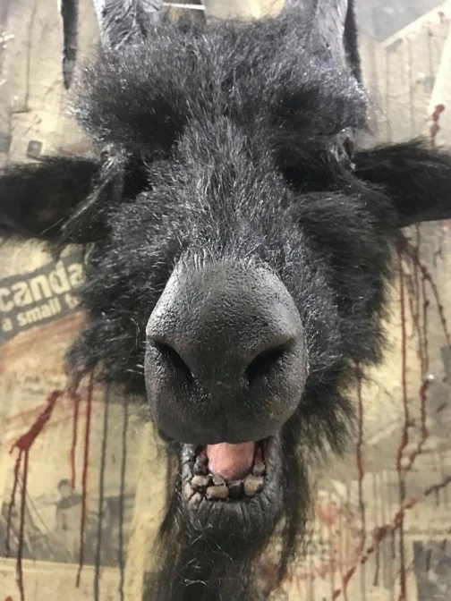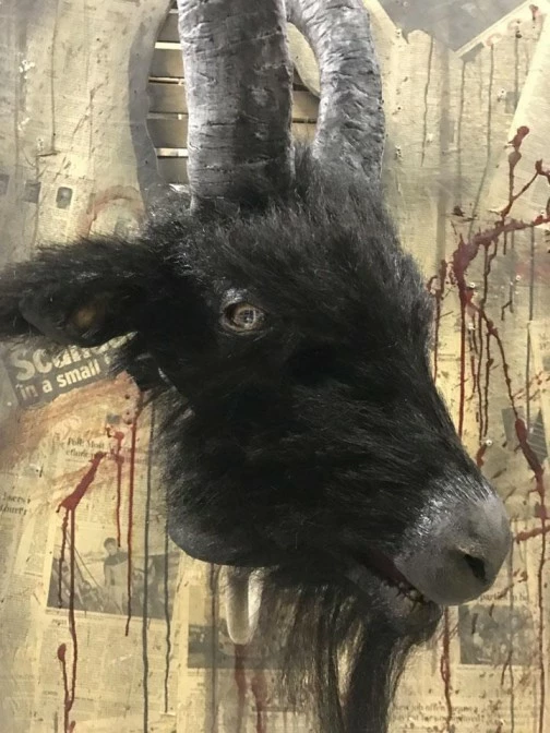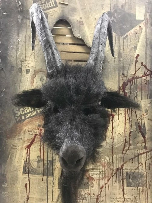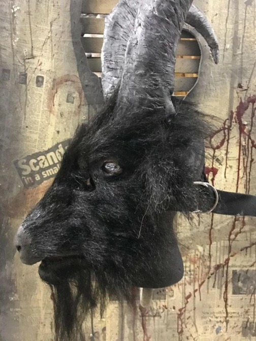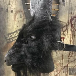 This black goat mask is incredible. With coarse black hairwhich has been attached by hand, this looks so realistic. This high quality latex mask has a separate working lower jaw which attached behind your head with a strap. The face part then fits over the top.Watch out for demons!