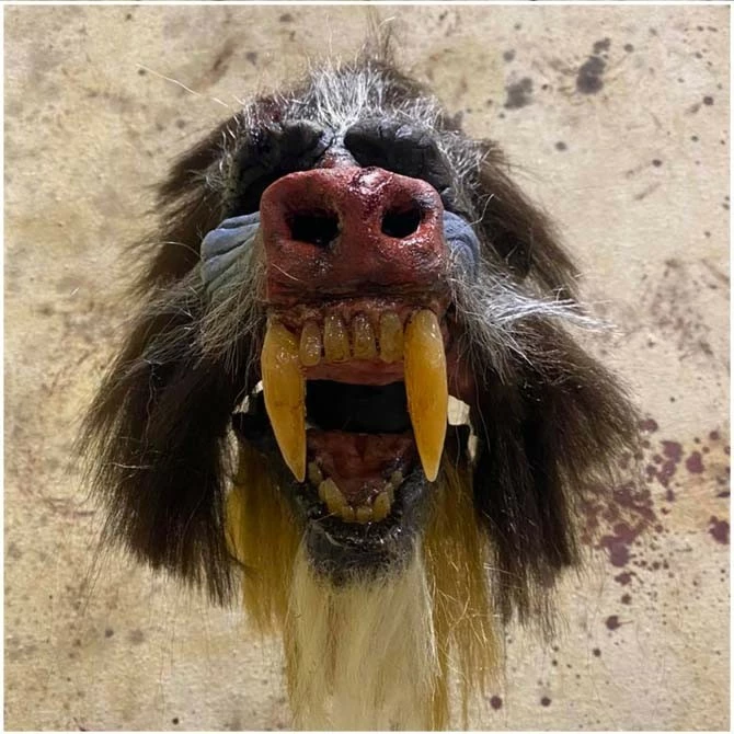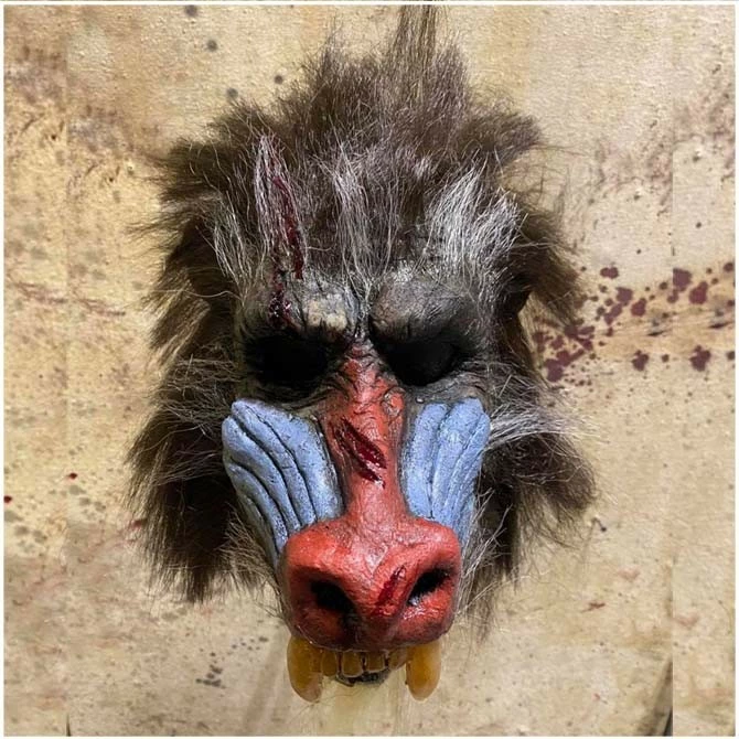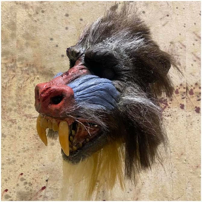 Incredibly detailed hand sculpted and painted baboon mask by Pumpkin Pulp.