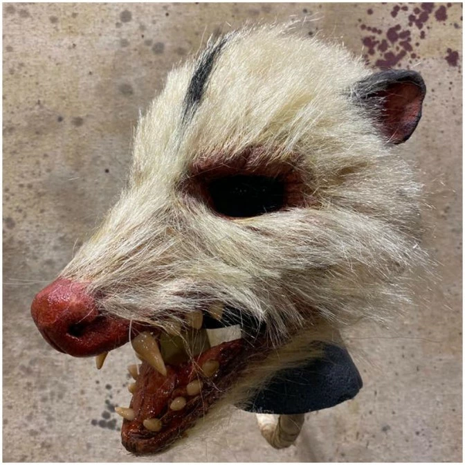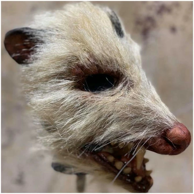 Poor thing got squished on the road. Deluxe hand-crafted latex mask with movable jaw.