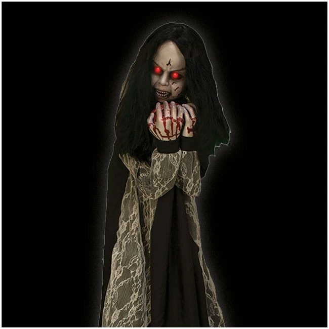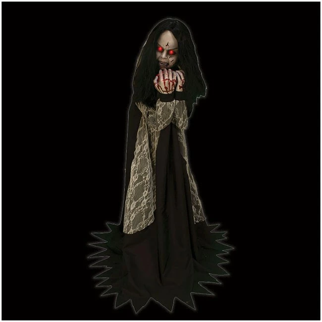 - Her black ragged robe and blood dripping hands instills a sense of foreboding